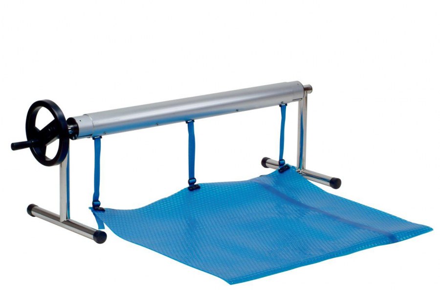 - Kompletní navijákové sady obsahují: nerezové stojny, teleskopickou tyč, sadu pásků a příchytek pro upevnění solární plachty, pojistku proti rozmotání.