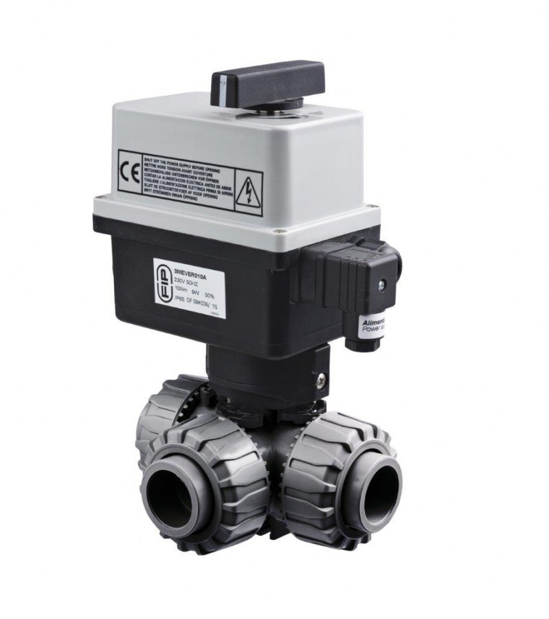 Podrobný popisPVC elektrický třícestný kulový ventil na lepení.