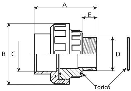 PVC šroubení 50mm x 1½" ext. s o-kroužkem (zesílené)