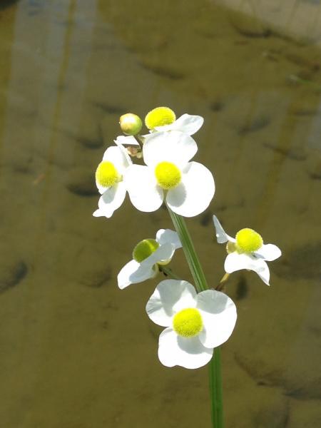 Šípatka širolistá (Sagittaria latifolia) Výška 60-80 cm. Kvete během letních měsíců červen a srpen, v propustné půdě na polostínem až slunečném stanovišti. Nejčastěji roste na okrajích vodních toků nebo nádrží. Je to rostlina s atraktivními bílo-žlutými květy.
