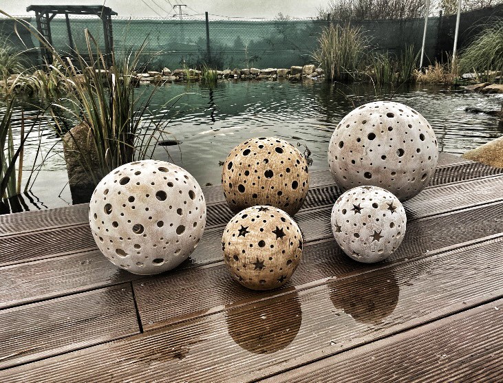 Pokud patříte mezi milovníky dekorací, určitě Vás potěší tento krásný svícen ve tvaru koule. Tato koule se hodí do každého interiéru i exteriéru. Parádu udělá samostatně stojící kdekoliv. Koule v provedení z keramiky nám tak může krášlit balkon, terasu nebo nám může zdobit zahradu, její oblíbené místečko bude také u Vašeho domácího krbu. Tato soška určitě potěší i Vaše blízké jako milý dárek.