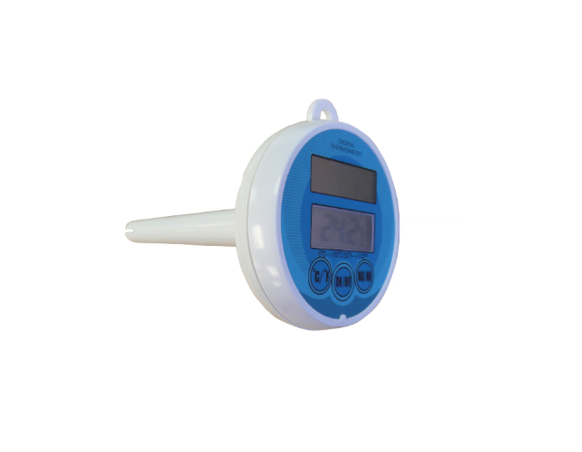 Plovoucí teploměr, slouží k měření teploty bazénové a jezírkové vody, doplněn provázkem k upevnění např. ke schůdkům.