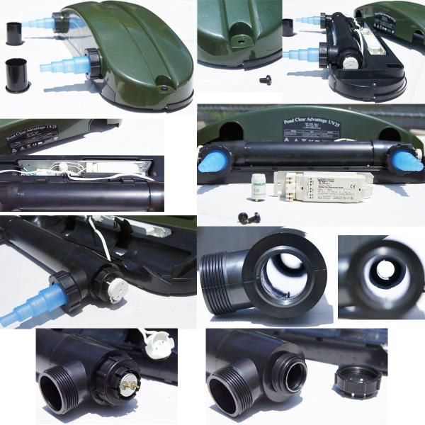 • Voda je čištěna pomocí krátkovlnného ultrafialového záření typu C (UV-C). Toto UV-C záření spolehlivě zabraňuje množení pro ryby nebezpečných jednobuněčných mikroorganismů (různých druhů bakterií, plísní, virů a řas).