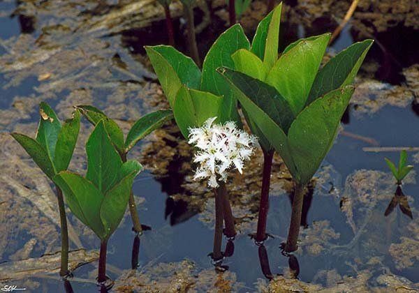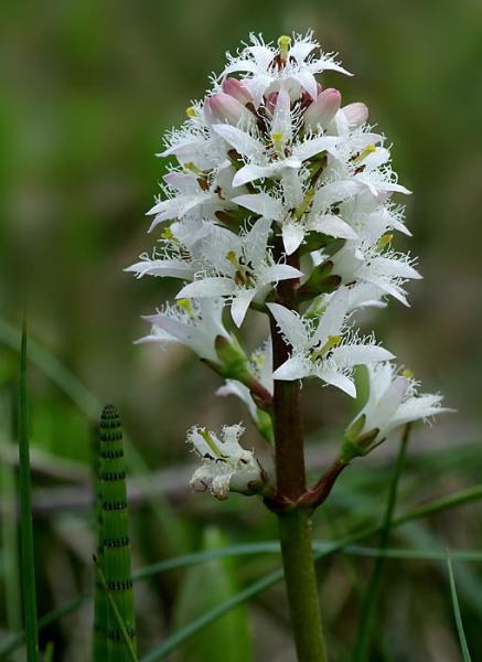 Menyanthes trifoliata - vachta trojlistá, nazývaná hořká jetel/trojlistník hořký. Podzemní části rostliny jsou chráněné, nesmí se sbírat.