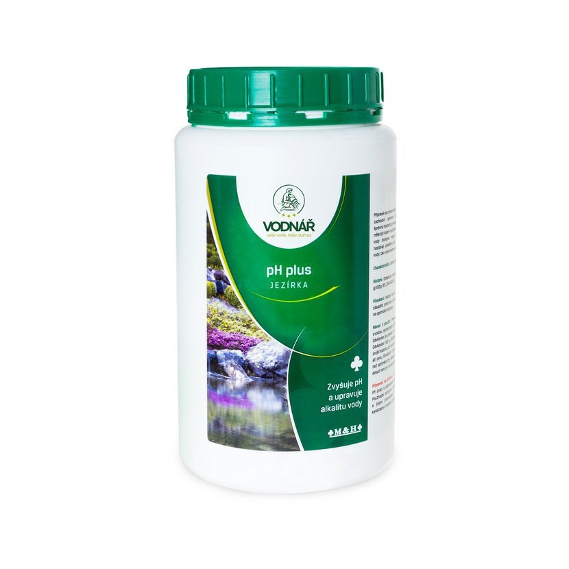 Přípravek na zvýšení pH a alkality v jezírku. Vodný roztok přípravku pH plus reaguje zásaditě, a proto se s ním snadno upravuje pH z kyselých hodnot na optimální hodnotu pH vody a rovněž zvyšuje alkalitu kyselých vod. Správná hodnota pH je důležitým aspektem při likvidaci vláknité řasy a zelené vody ve vašem jezírku. Snižuje se zde i riziko vzniku vláknité zelené řasy.