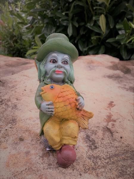 Zahradní a vodní doplňky, dekorace Dekorace » Vodník s kapříkem sedící malý (polyresin)