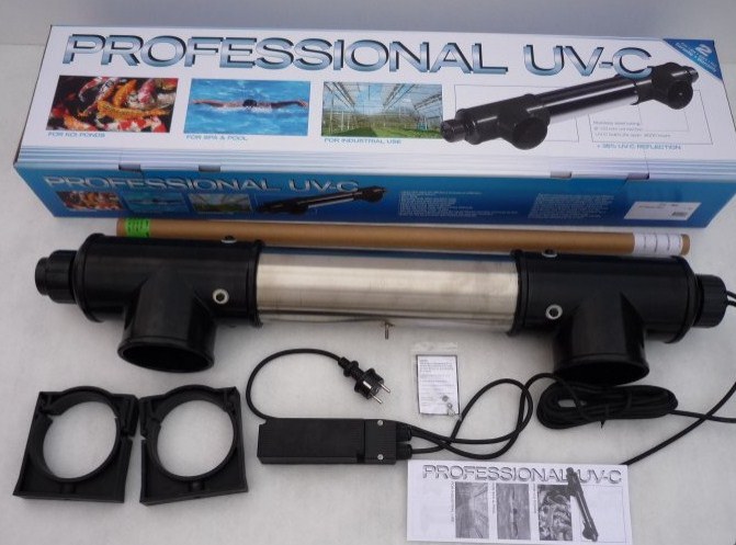 Použití v jezírku: UV-C Professional poskytuje čistou vodu a zároveň snižuje potřebu chemických látek a léků. Speciální přípravky nemusí být přidány do rybníka tak často, protože přístroj zničí všechny nebezpečné patogeny, které mohou být přítomny ve vodě. Pro dosažení nejlepších výsledků je doporučeno použít UV-C Professional ve spojení s mechanicko-biologickým filtrem.