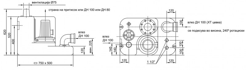 - výtlak volitelný DN 80 nebo DN 100