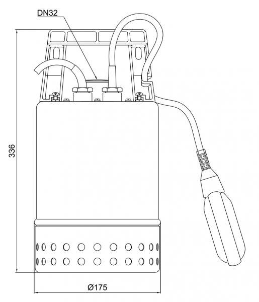 - Čerpadlo s 10 m kabelem a flexo vidlicí, hadicový nátrubek 90° (ZPK 30: DN 25; ZPK 35 a ZPK 40: DN 32).