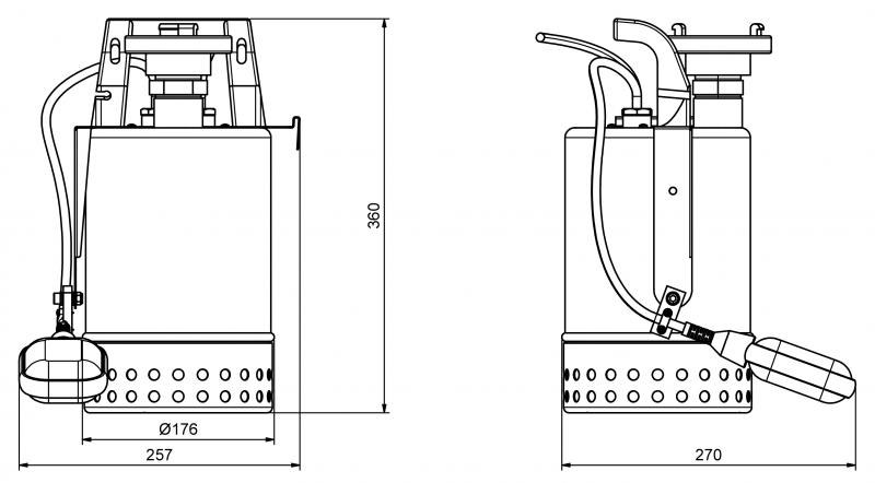• Nerezové čerpadlo E-ZW 65 A s integrovanou zp. klapkou, plovákem na kloubu a sponami pro upevnění čerpadla v boxu, 10m kabelu, a spojkou « C ».