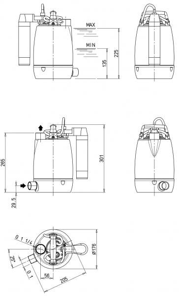 - Kompaktní, koroziodolné ponorné kalové čerpadlo včetně plovákového odběru a zpětného ventilu