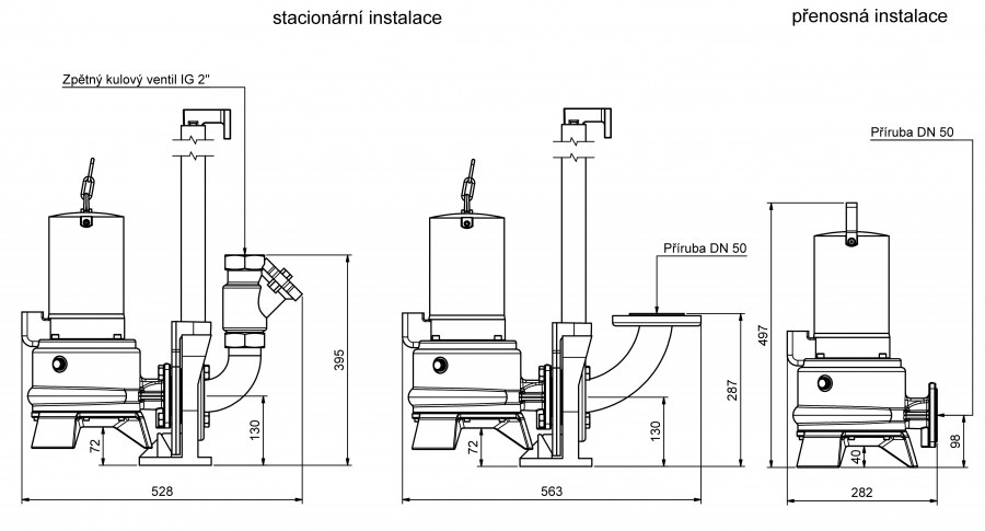 - Ponorná kalová čerpadla v provedení ze šedé litiny pro mobilní i stacionární použití (spouštěcí zařízení).